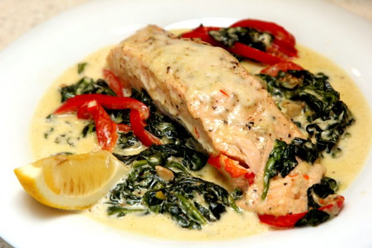 Šī recepte ir domāta Redmond multikatliem. Lasis ar spinātiem un papriku ir lielisks, liekam to uz šķīvj...